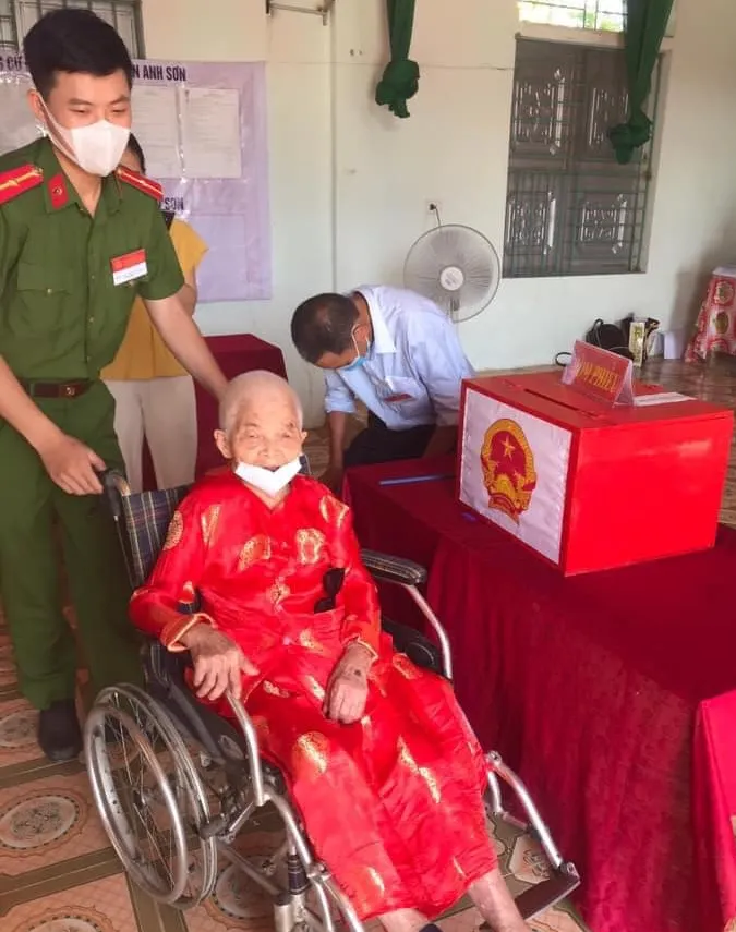 Ngày 23-5, cùng với hơn 2,2 triệu cử tri ở tỉnh Nghệ An, cụ Nguyễn Thị Năm (101 tuổi, trú xóm 4, xã Hội Sơn, huyện Anh Sơn, Nghệ An) vui mừng đi bầu cử đại biểu Quốc hội và HĐND các cấp nhiệm kỳ 2021-2026.