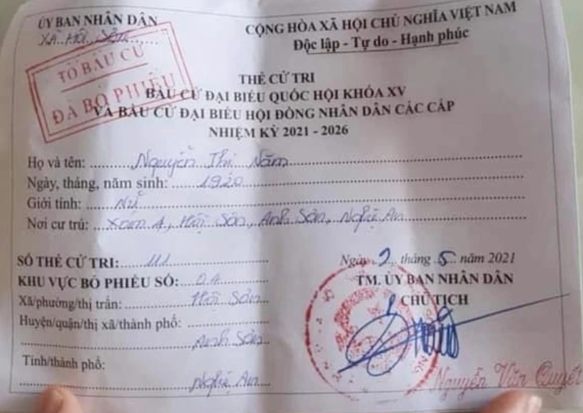 Thẻ cử tri của cụ Nguyễn Thị Năm.