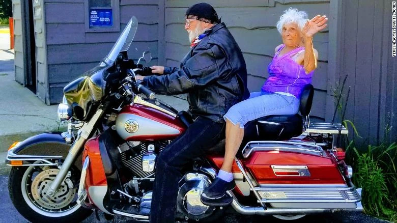 Bà Dorothy Pollack chuẩn bị thực hiến chuyến đi chơi trên mô tô đầu tiên của đời mình. Ảnh: CNN