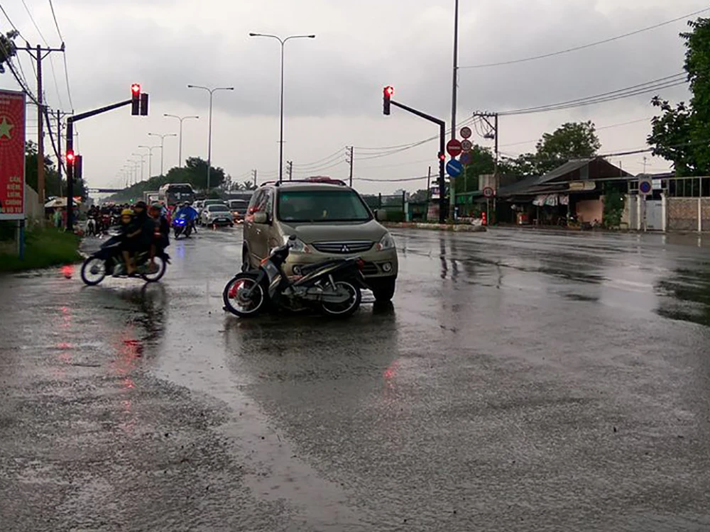 Chiếc ô tô tông trúng hai xe máy tại giao lộ chiều 30-10.