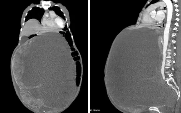 Khối u chiếm gần hết ổ bụng bà T. Ảnh: BV CUNG CẤP