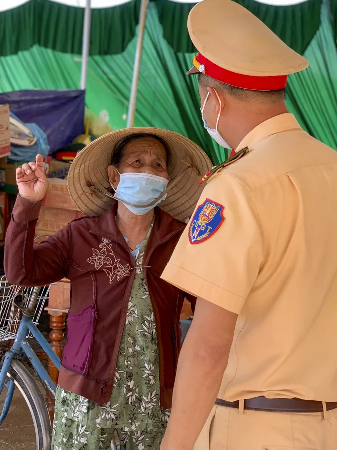 "Tại đây, cụ bảo thương các cháu làm việc vất vả giữa trời nắng nên chở thùng nước ra tặng, động viên các lực lượng" – một cán bộ Phòng CSGT tỉnh Thừa Thiên - Huế làm việc tại chốt kể lại.