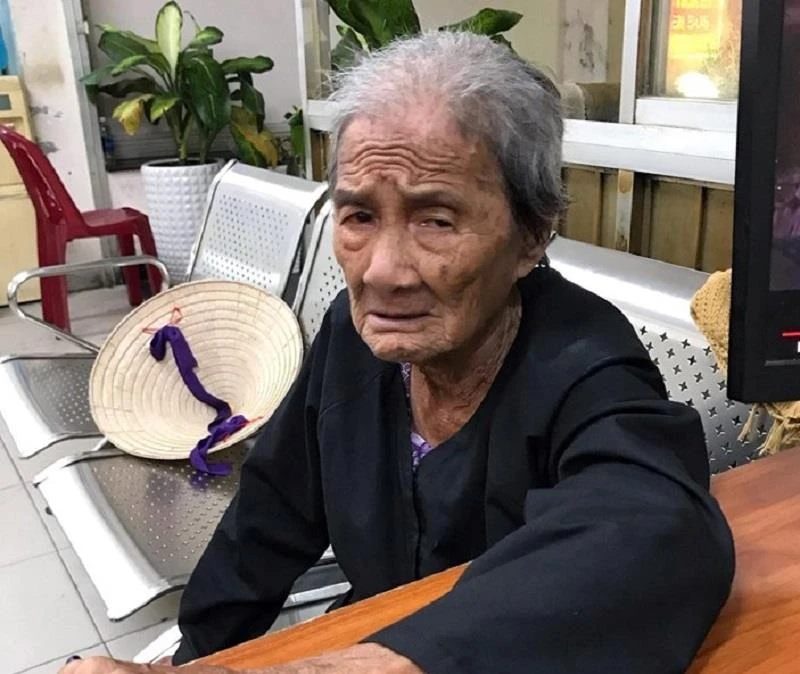 Bà lão đội trên đầu một chiếc khăn len màu vàng mỡ gà, mặc áo nâu, tay chống gậy, trong túi cụ bà không có giấy tờ tùy thân, chỉ có vài trăm ngàn, cụ không nhớ thông tin gì về gia đình, người thân.