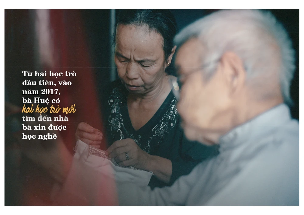 Từ hai học trò đầu tiên, vào năm 2017, bà Huệ có hai học trò mới tìm đến nhà bà xin được học nghề. Gần một tháng, bà đã trao trọn tất cả bí kíp nghề nghiệp, dạy học trò bằng cả tấm lòng và trách nhiệm.