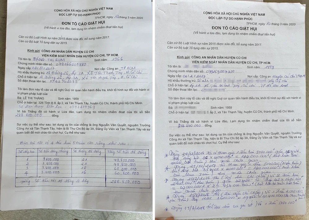Nhiều người dân xã An Nhơn Tây, Tân Thạnh Tây... (huyện Củ Chi) đã viết đơn trình báo chính quyền địa phương. Ảnh: NT