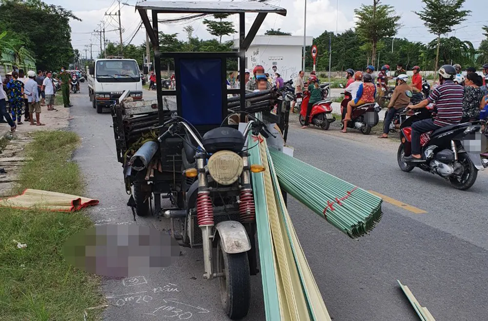 Bé gái tử vong ngay tại chỗ sau khi va chạm với xe ba bánh chở tôn cửa cuốn... Ảnh HT