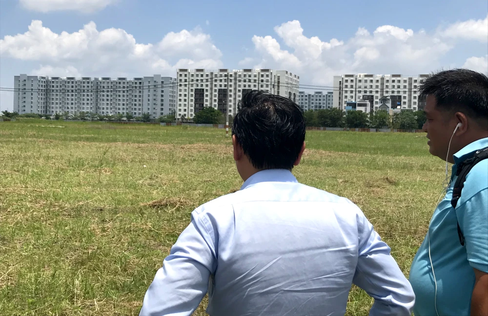Quận Bình Tân đã đề nghị chủ đầu tư một số dự án xung quanh phát quang cỏ lau để kiểm tra xem chung cư có hết bụi không. Ảnh: L. THOA