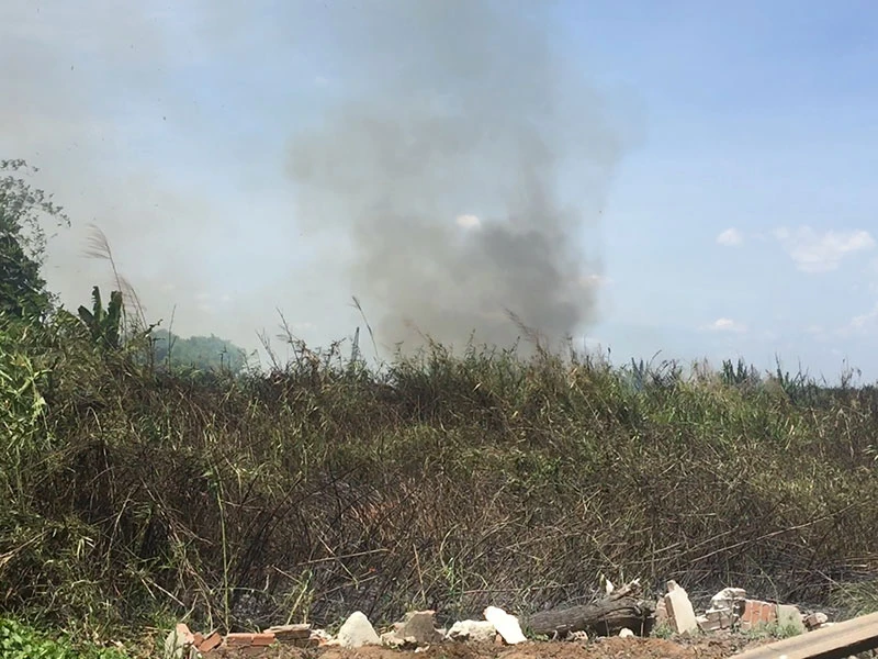 Trưa 14-4, người dân ở con hẻm cuối đường 27 (khu phố 9, phường Hiệp Bình Chánh, quận Thủ Đức, TP.HCM) phát hiện khói lửa bùng phát từ đám cỏ rậm gần đó.