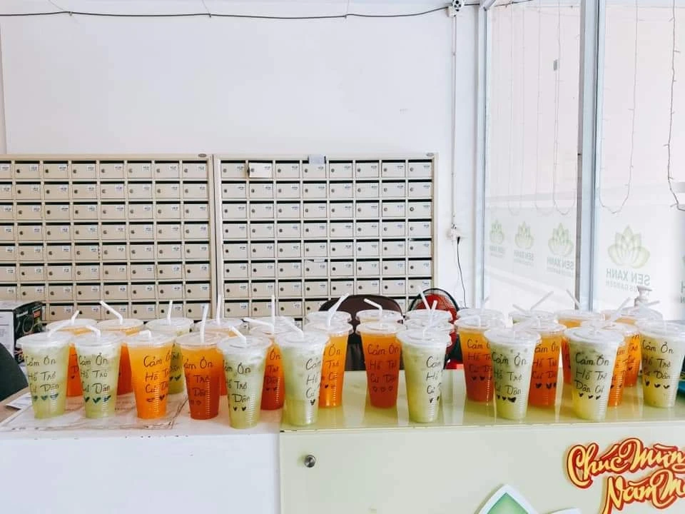 Những ly nước chan chứa tinh thương với dòng chữ thân thương "cảm ơn hỗ trợ cư dân". Ảnh: NVCC