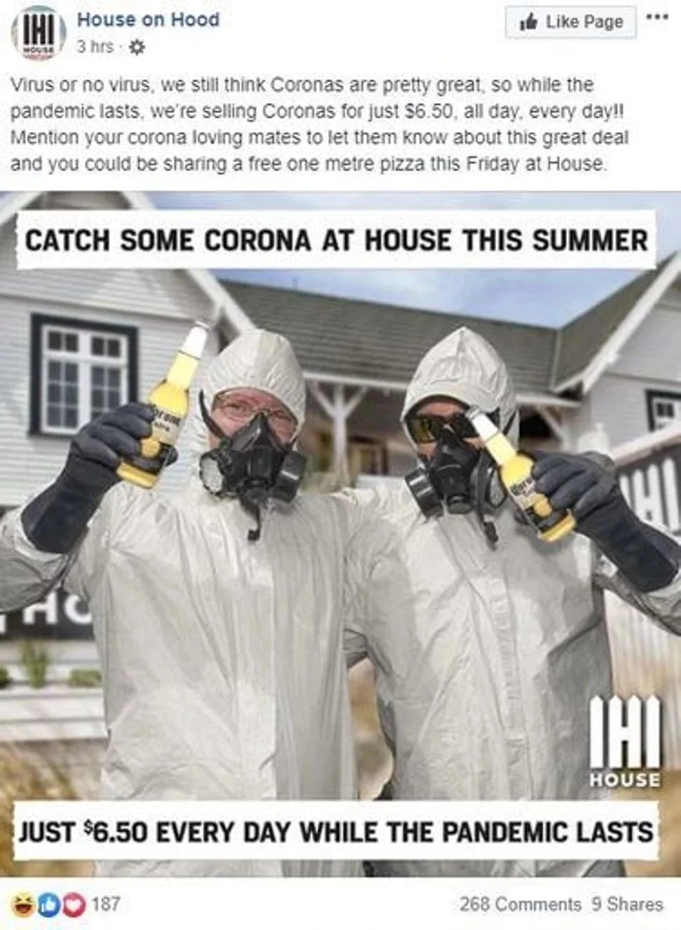 Một quán bar tại New Zealand cũng tận dụng cơ hội để thu hút khách hàng. Quán bar này sẽ giảm giá đối với bia Corona cho đến khi dịch bệnh do chủng virus 2019-nCoV chấm dứt.