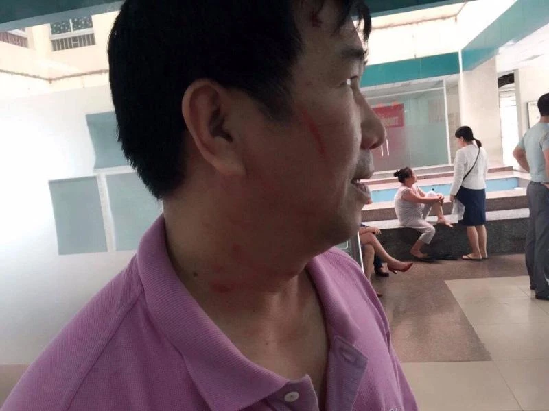 Ông Hiển bị chảy máu chân, đầu, cổ... và được người thân đưa đi cấp cứu.