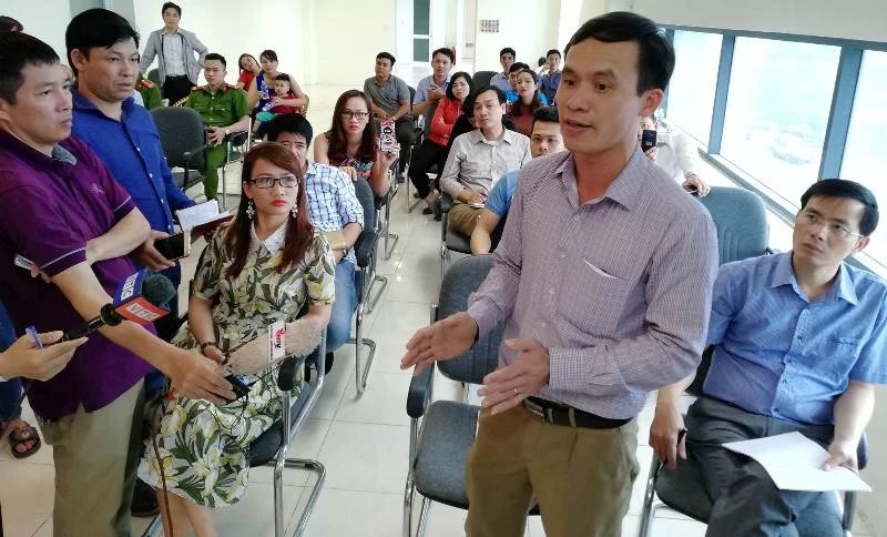 Đại diện chủ đầu tư đứng lên đối thoại với người dân và lãnh đạo tỉnh Nghệ An.