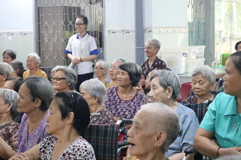 Ngoài giao lưu, trò chuyện và ca hát cùng các cụ, nhóm cũng đã trao tặng 80 phần quà cho các cụ bà ở đây; tổ chức nấu ăn trưa cho các cụ; tặng gậy, khung tập đi cho viện dưỡng lão.