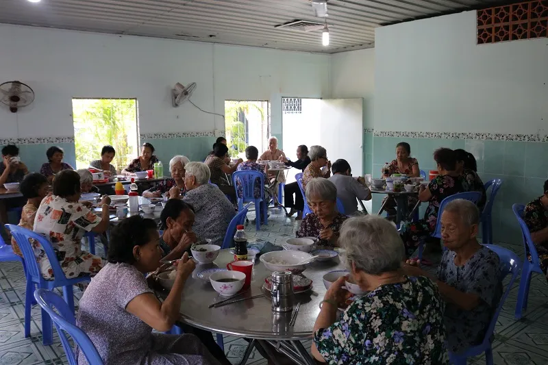 Bữa cơm gia đình, cùng quây quần bên con cháu trở nên hiếm hoi trong cuộc đời của các cụ... Ảnh: THANH TUYỀN