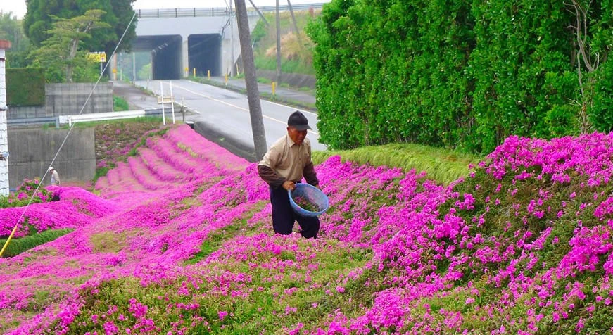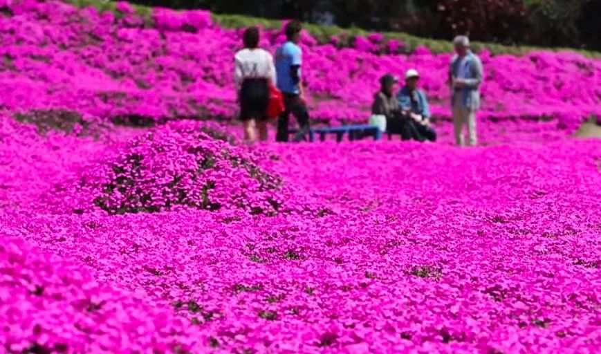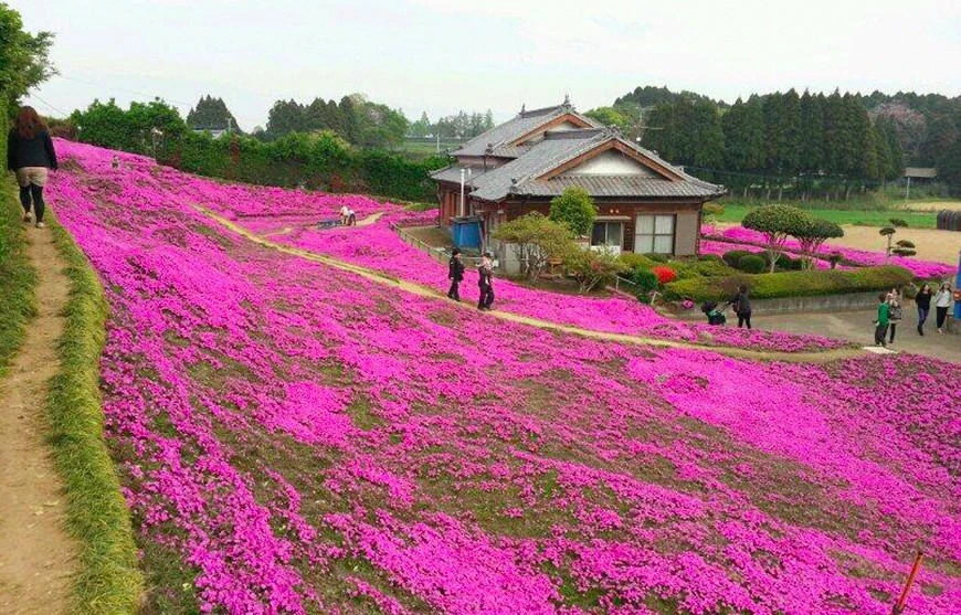 Chỉ sau hai năm chăm bón, hoa shibazakura đã nở rộ trên 2.000 m2.