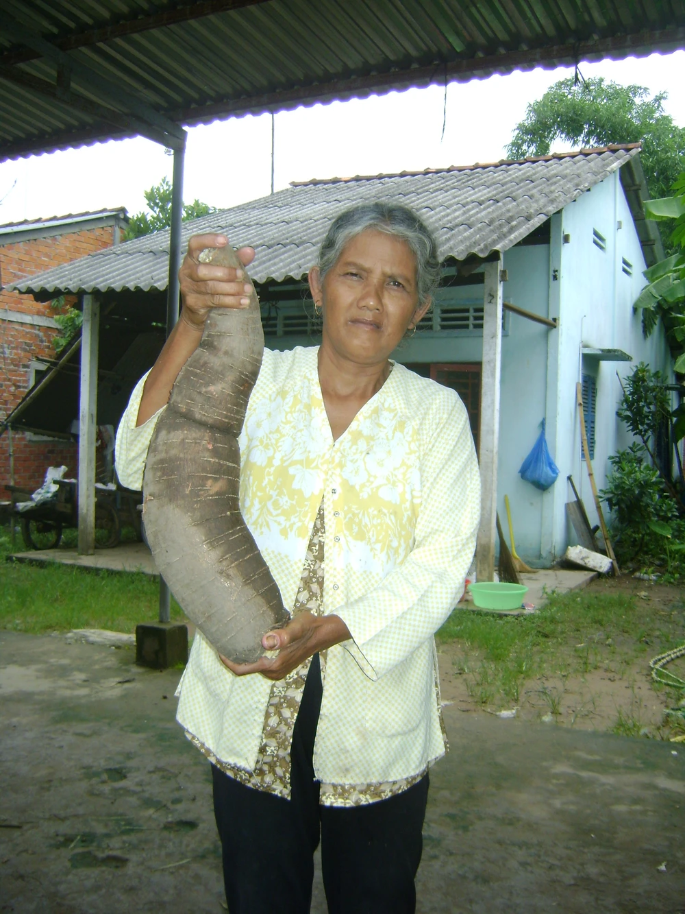 Ngày 8-6, bà Giang Thị Sên (58 tuổi, ngụ tại xã Phú Tân, huyện Châu Thành, tỉnh Sóc Trăng) cho biết “Gia đình bà vừa đào được củ khoai mì khủng dài 0,6m, nặng hơn 5 kg”. Theo bà Giang, do trước nhà có một mảnh đất trống nên bà trồng khoai mì để lâu lâu đào lên đem bán. Chiều 7-6, gia đình bà Sên bất ngờ khi đào lên được củ khoai mì to như thế, nhiều người thấy lạ đã đến xem củ khoai mì.