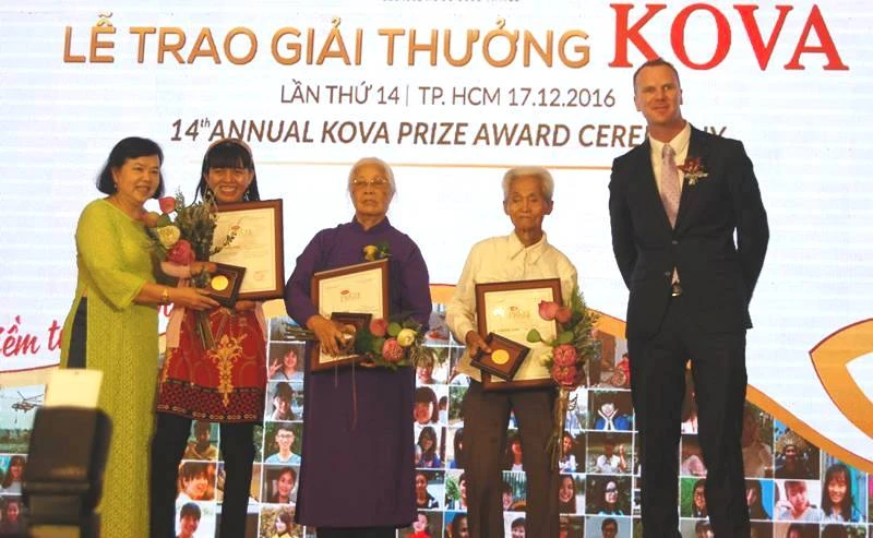 Ông Ngộ (áo trắng) đã nhận được giải thưởng KOVA ở hạng mục Sống đẹp.