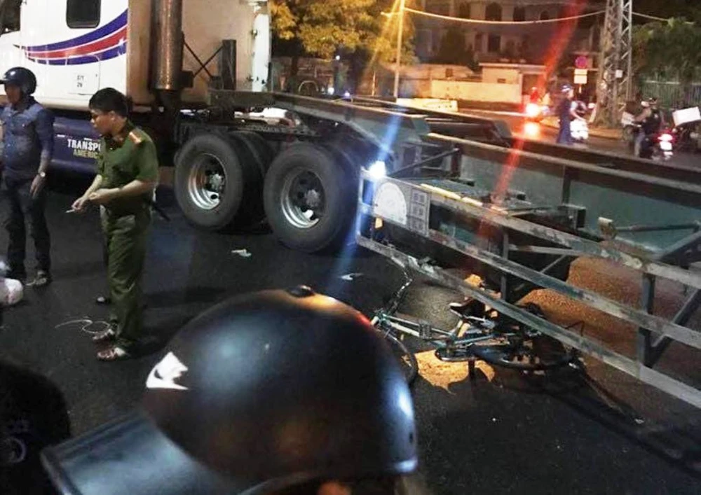 Cụ Phước bị xe container cán qua, tử vong tại chỗ. Xe đạp lọt dưới gầm xe container, hư hỏng. Tài xế rời khỏi hiện trường sau tai nạn.