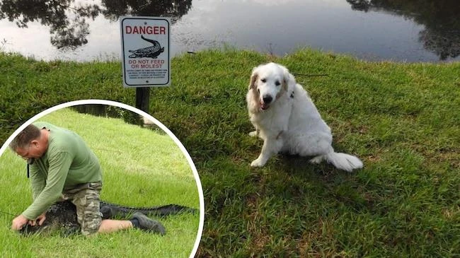 Ông Buddy Ackerman kể rằng một con cá sấu dài 2,44 m đã chui lên từ một cái ao duy trì gần chung cư Palm Harbor của ông vào đầu tuần này, vồ lấy con chó của ông khi họ đang đi dạo vào sáng sớm.