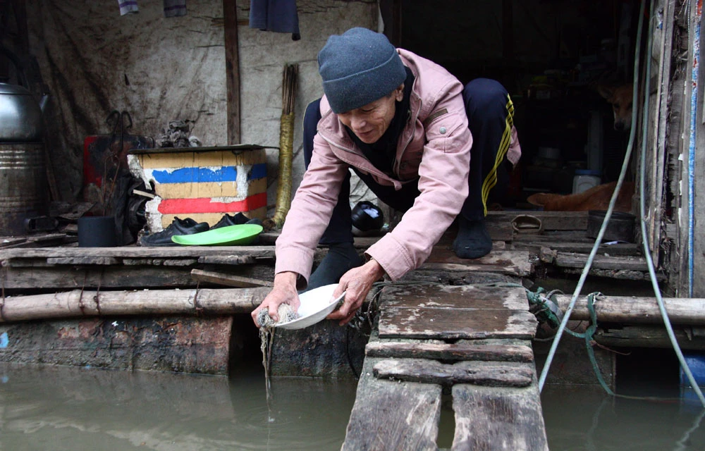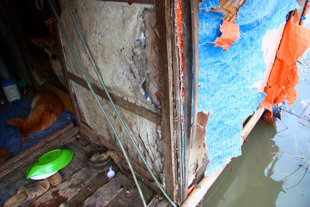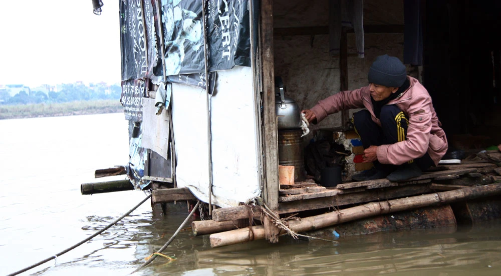 Theo cụ Thành, căn lều này được mua lại của người khác với giá 3 triệu đồng, vài năm trước bị bão tốc bay nóc lên bờ, sau trận ấy, cụ lại nhờ người sửa sang lại để lấy chỗ ở. “Ở dưới sông sinh hoạt cho tiện, nước sạch thì lên bờ lấy, tắm giặt thì tắm luôn ở sông, tôi mấy hôm nay vẫn tắm ở dưới này”, cụ Thành nói.