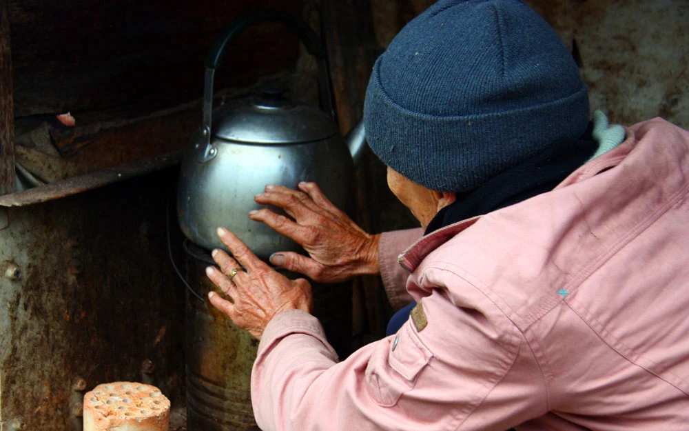 Thỉnh thoảng gió ở khe hở lùa vào làm ông run nhẹ lên, ông bước ra cửa nơi có bếp lò than xoa tay nhẹ, để cho bớt lạnh.