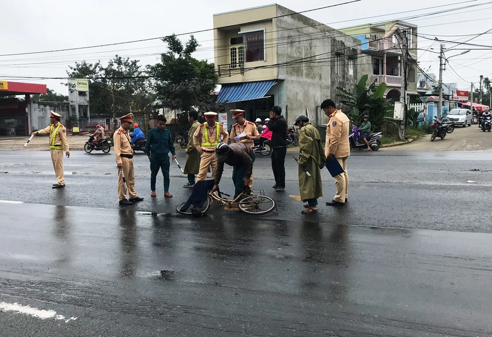 Lực lượng chức năng địa phương phối hợp cùng CSGT huyện Hòa Vang phong tỏa hiện trường, điều tiết giao thông để làm rõ nguyên nhân vụ tai nạn.