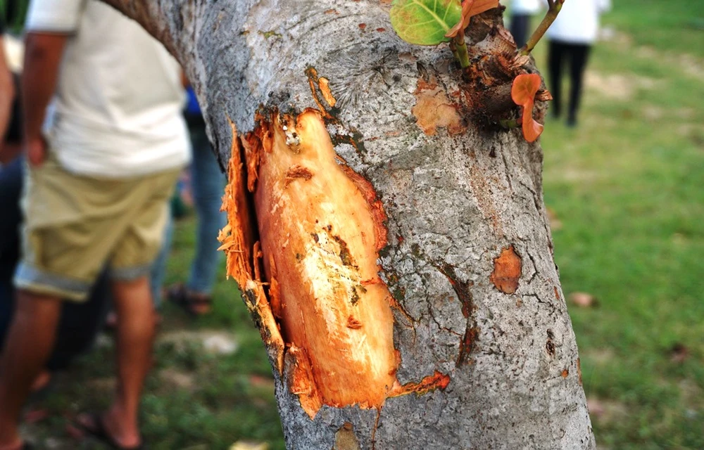 Cả xe và người dội ngược ra lại nhiều mét, cụ ông tử vong tại chỗ. Xe máy nát bét, phần vỏ của gốc cây bị tróc mảng vỏ lớn.
