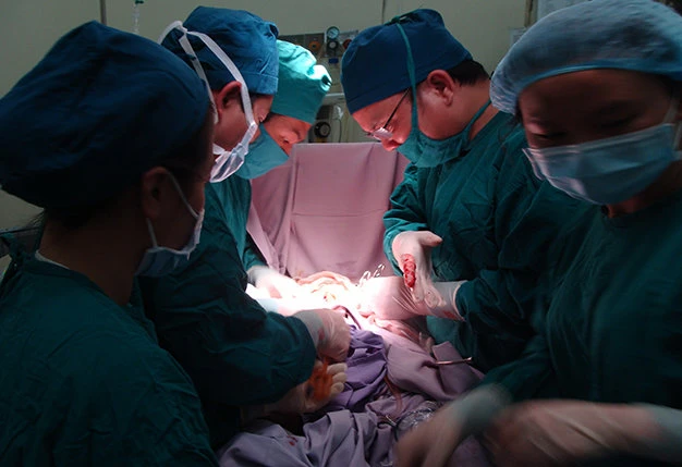 Các bác sĩ phẫu thuật hở, lấy sỏi bàng quang cho ông K’ Tiêng - Ảnh: C.Thành