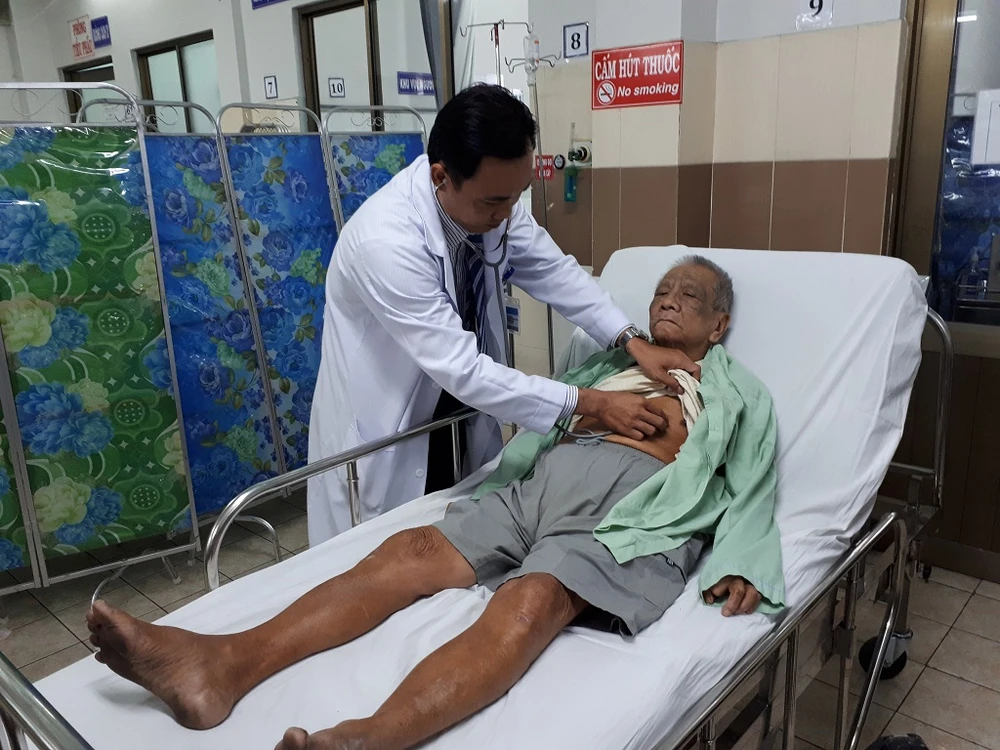 Cụ ông Dương Văn Khanh được tái khám tại BV Nguyễn Tri Phương sáng 29-8