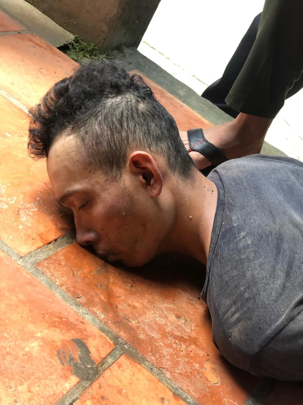 Nghe tiếng động bất thường, người dân gần đó đến kiểm tra thì phát hiện thanh niên này đang định bỏ trốn nên tri hô vây bắt, giao cho cơ quan công an.