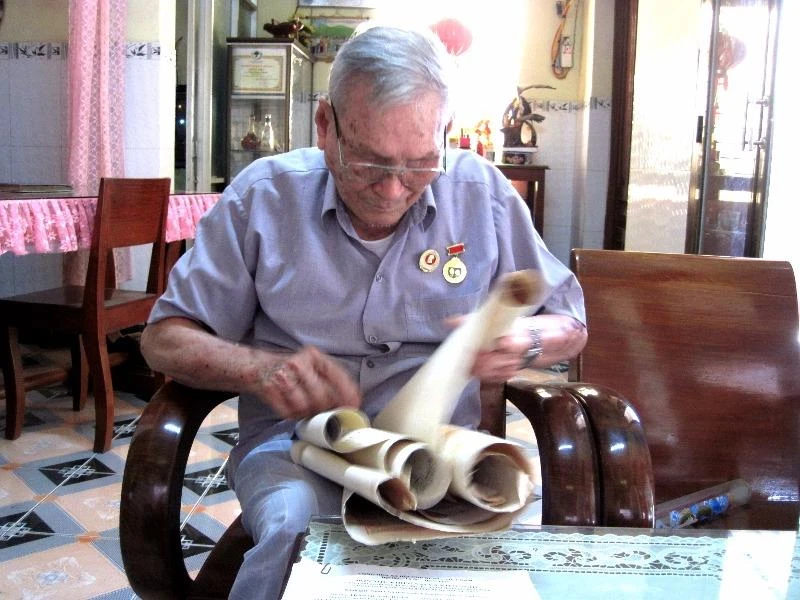 Vào những ngày này chúng tôi đến thăm gia đình, ông cẩn thận lấy trong tủ ra một bó giấy cuộn tròn, bọc nylon rất cẩn thận. Ông nhẹ nhàng mở ra cho chúng tôi xem, đó là những tấm bằng Tổ quốc ghi công, giấy báo tử, huân huy chương các loại…