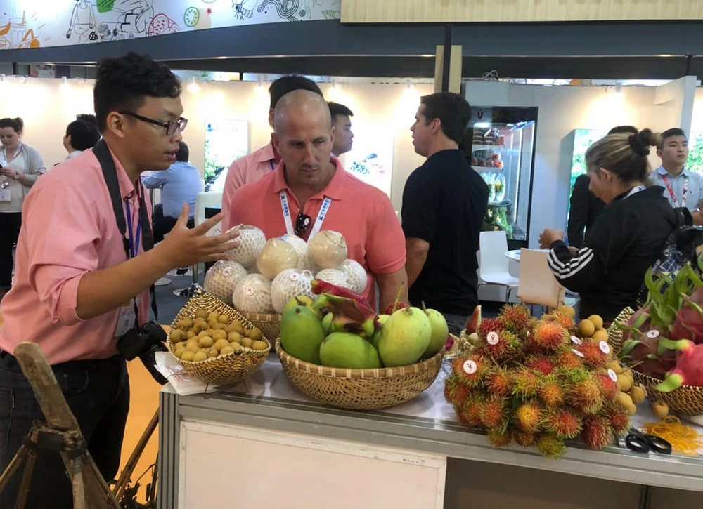 Khách nước ngoài tìm hiểu nông sản xuất khẩu Việt Nam. Ảnh: Quang Huy