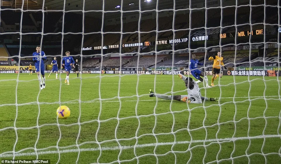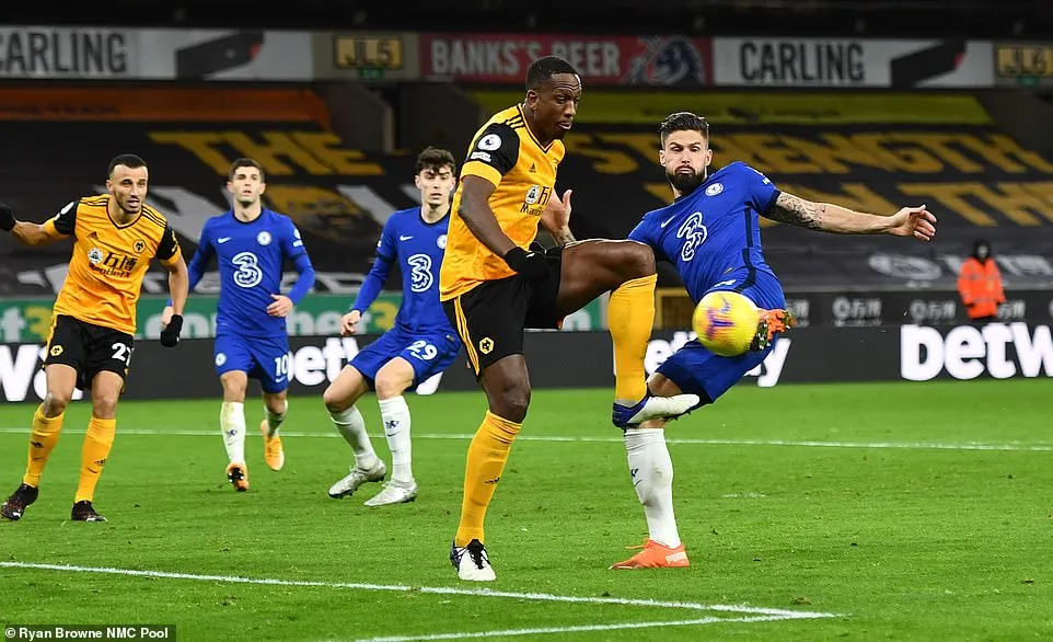 Tuy nhiên tiền đạo người Pháp lại giật mình, khiến pha dứt điểm không tốt đưa bóng đi ra ngoài. Tấn công liên tục, nhưng thiếu may mắn cùng với sự chắc chắn nơi hàng thủ của Wolves, Chelsea đành chấp nhận tỷ số hoà không bàn thắng sau 45 phút đầu tiên.