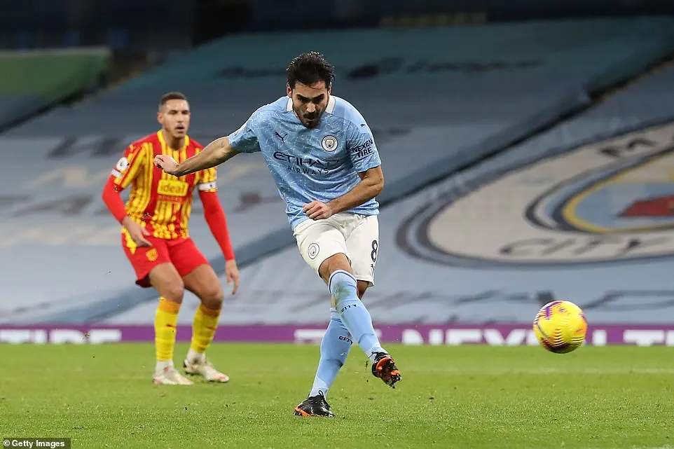 Nếu như Chelsea thua, thì Man City cũng không có được kết quả thuận lợi khi để chia điểm trước West Bromwich Albion ngay trên sân nhà. Tấn công liên tục và tạo nên sức ép lớn khi giành quyền kiểm soát bóng lên đến 77%. Nhưng đến phút 30, Man City mới có được bàn thắng nhờ công của Gundogan sau khi đón đường trả bóng vừa tầm của đồng đội Sterling.