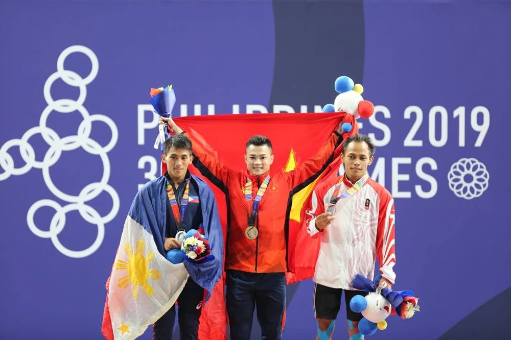 Đối thủ cạnh tranh trực tiếp là chủ nhà Philippines, quyết “giật” trên tay tấm HCV của VĐV quê Bắc Ninh bằng cách liên tục thay đổi mức tạ từ 146 kg lên 153 kg ở lượt nâng thứ hai. Tuy nhiên, sau hai lần nâng, VĐV đại diện cho đội chủ nhà là Ceniza John Fabliar đều thất bại và đành chấp nhận chiếc HCB với mức tổng cử là 252 kg. HCĐ thuộc về đại diện đến từ Indonesia là VĐV Wijoyo Surahmat với mức tổng cử 250 kg.