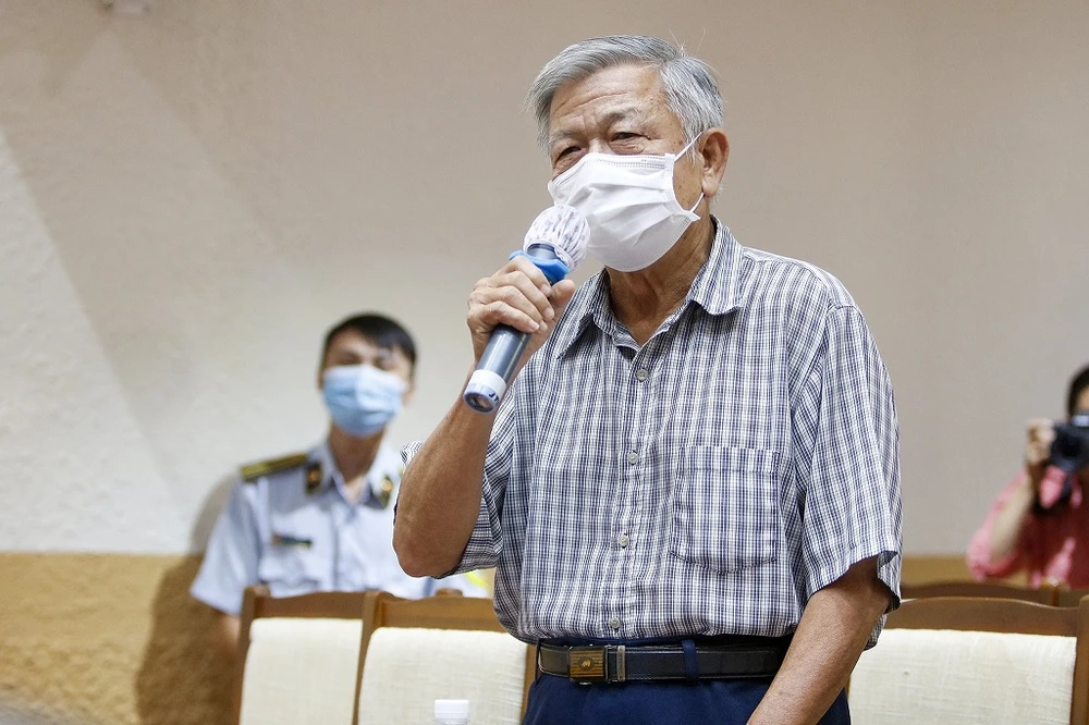 Cử tri Nguyễn Thanh Vân nêu ý kiến tại hội nghị tiếp xúc. Ảnh: NGUYỆT NHI