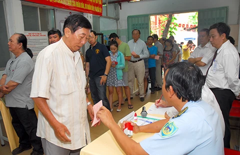 Cử tri phường 11, quận 5, TP.HCM đi bầu tại điểm bỏ phiếu số 77 đường Trần Hưng Đạo. Ảnh: HTD