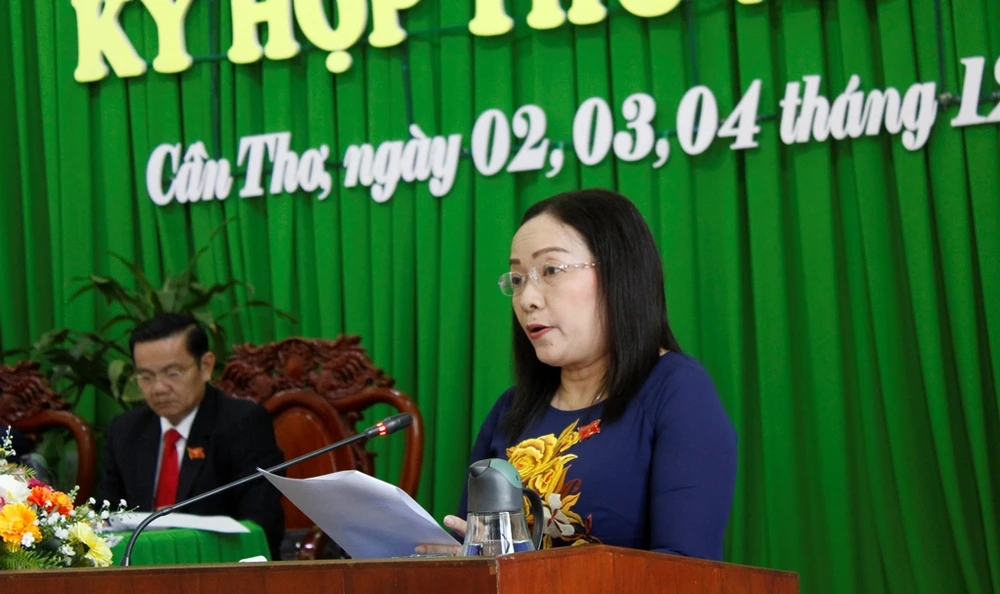 Phó Chủ tịch HĐND TP Cần Thơ Vũ Thị Cánh báo cáo tổng hợp ý kiến, kiến nghị của cử tri trước kỳ họp thứ 19. Ảnh: NHẪN NAM