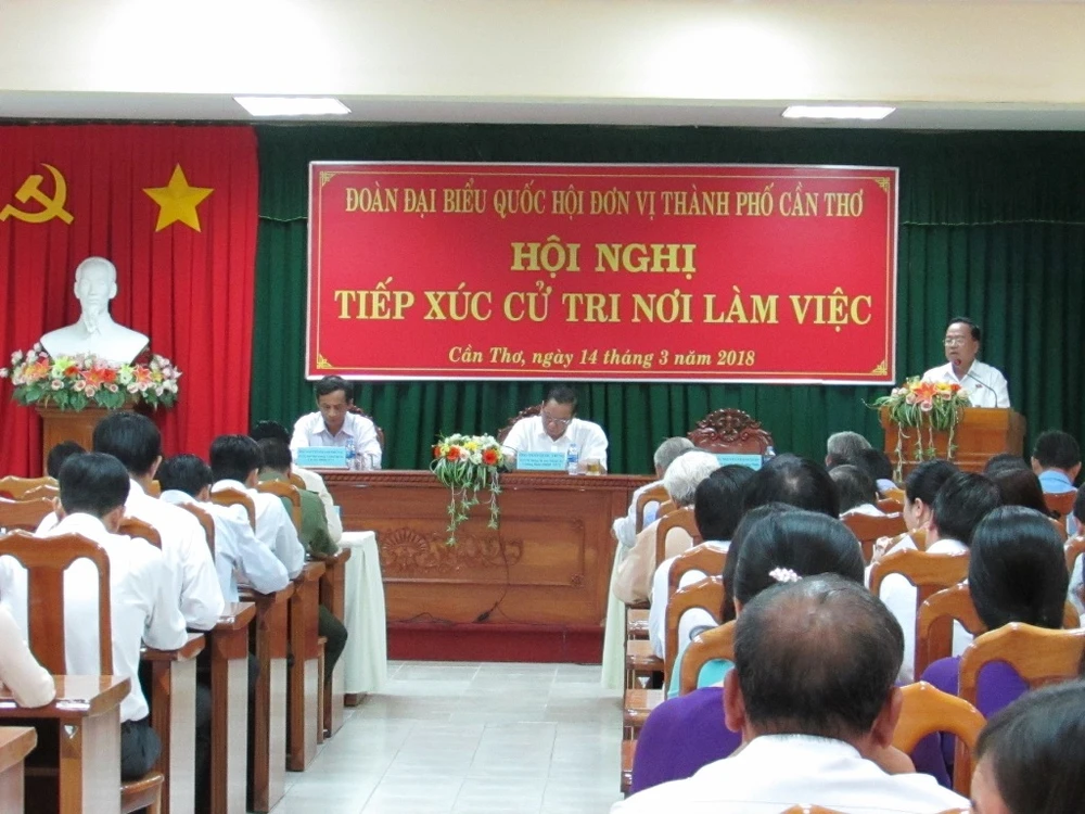 Ngày 14-3, Đoàn đại biểu Quốc hội đơn vị TP Cần Thơ tổ chức hội nghị tiếp xúc cử tri tại hội trường các ban Đảng của Thành ủy.