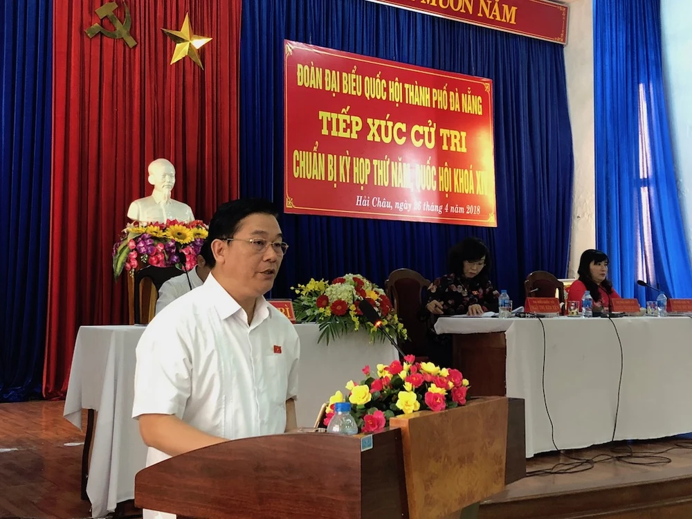 Ông Nguyễn Thanh Quang (Trưởng đoàn ĐBQH TP Đà Nẵng) trả lời ý kiến cử tri. Ảnh: LÊ PHI
