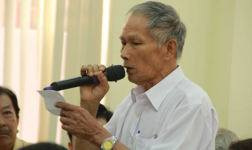 Cử tri TP Đà Nẵng chất vấn các đại biểu trong một cuộc tiếp xúc tại quận Hải Châu. LÊ PHI.
