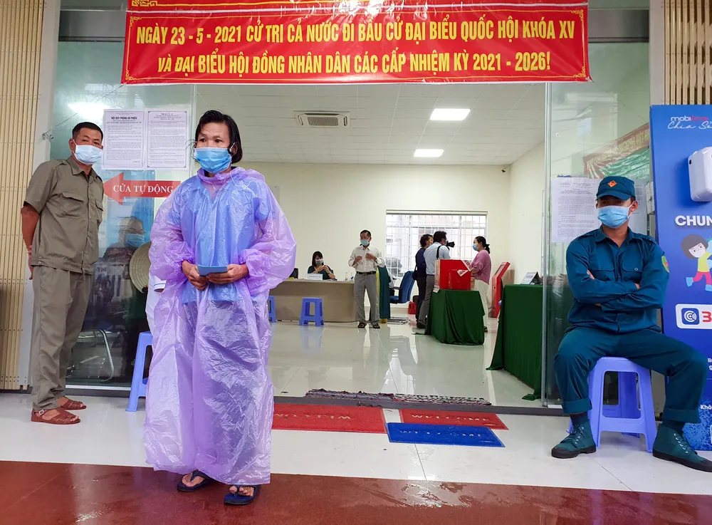 Thậm chí, có cử tri dầm mưa để đi bỏ phiếu.