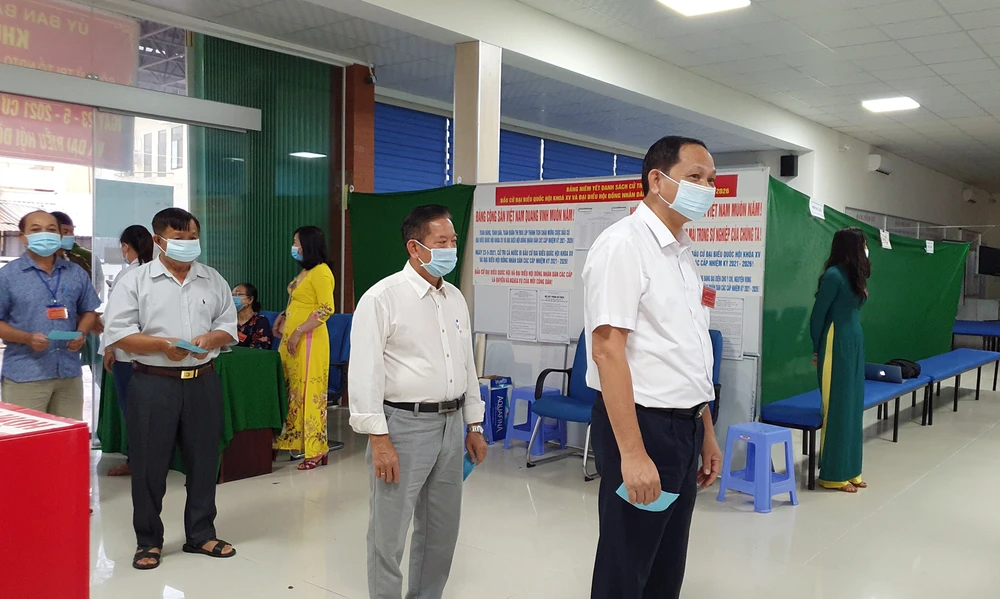 Tại các điểm bỏ phiếu, thông điệp 5K được thực hiện nghiêm túc.