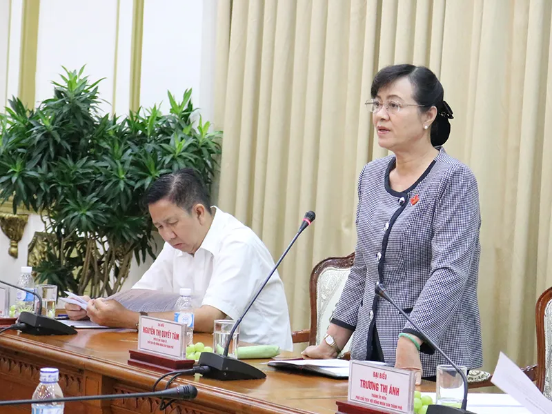 Chủ tịch HĐND TP.HCM Nguyễn Thị Quyết Tâm tại cuộc họp với các tổ đại biểu HĐND TP. Ảnh: T.TUYỀN