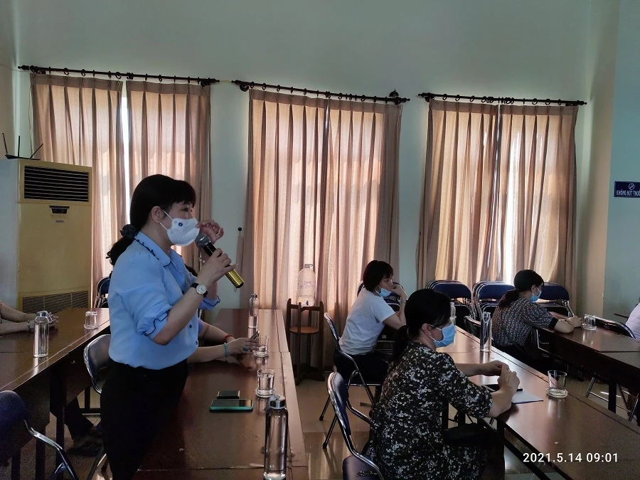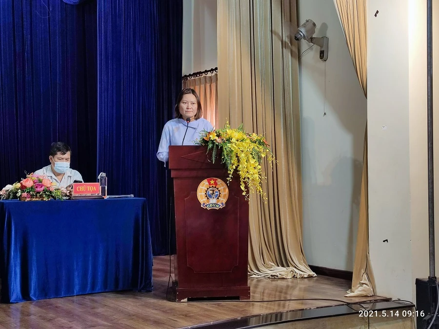 Ứng cử viên Nguyễn Thị Thanh Vân chia sẻ tại buổi tiếp xúc cử tri. Ảnh: NGUYỄN HIỀN