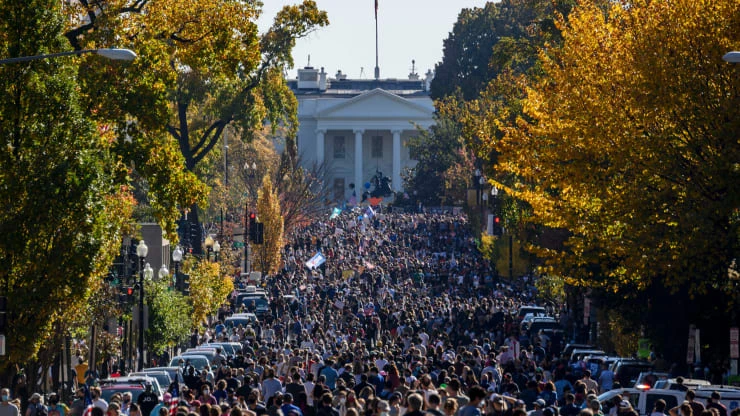 Người dân thủ đô Washing D.C tập trung tuần hành bên ngoài Nhà Trắng hôm 7-11. Ảnh: CNBC