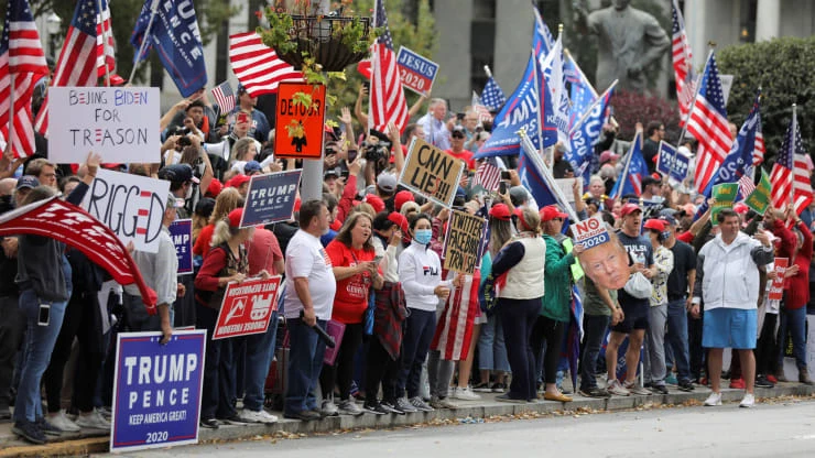Người ủng hộ ông Trump tập trung biểu tình ở TP Atlanta, bang Georgia ngày 7-11. Ảnh: CNBC