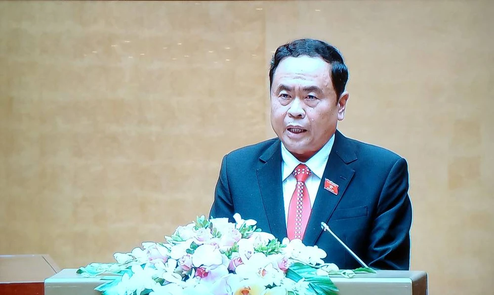 Ông Trần Thanh Mẫn, Chủ tịch Ủy ban Trung ương MTTQ Việt Nam, báo cáo ý kiến, kiến nghị của cử tri và nhân dân trước Quốc hội. Ảnh: CHÂN LUẬN