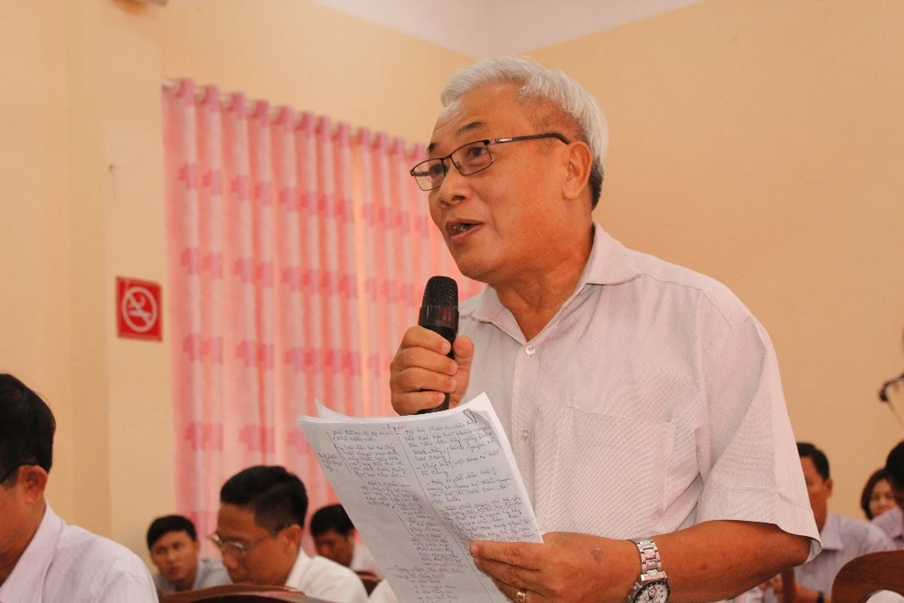 Cử tri Võ Trọng Hữu phát biểu tại buổi tiếp xúc cử tri chiều 23-6. Ảnh: NHẪN NAM