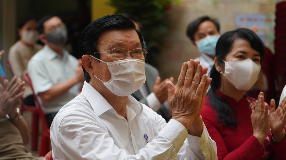 Tại đây, nguyên Chủ tịch nước Trương Tấn Sang cũng có mặt từ sớm để bỏ phiếu thực hiện quyền công dân của mình cùng các cử tri khác.